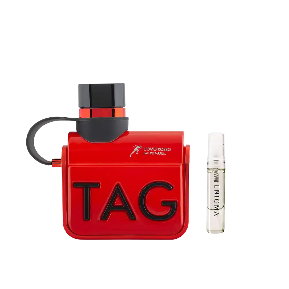 Tag Him Uomo Rosso es una fragancia masculina (aunque algunos la usan como unisex) lanzada por Armaf en 2024. Es cálida, picante y bastante expresiva. Empieza con cardamomo, lavanda y notas aromáticas que la hacen sentirse limpia, elegante y atractiva desde el primer instante. Luego se intensifica con pimienta negra y especias que aportan fuerza, carácter y un toque “rugoso”. Finalmente se asienta sobre una base dulce-ahumada de vainilla, tonka, incienso y pachulí, lo que le da profundidad y calidez.
