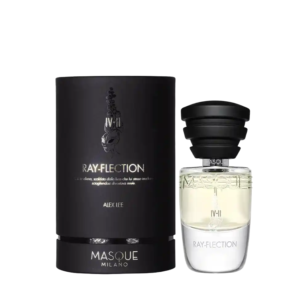 El perfume Ray-Flection de Masque Milano es una fragancia creada por el perfumista Alex Lee. La fragancia está inspirada en un sueño, una visión surrealista de una «flor alienígena» que irradia una luz intensa y se derrite en miel dorada, capturando la esencia de un momento radiante y onírico. La composición se despliega con una apertura brillante y chispeante, gracias a los aldehídos y la mandarina, que se mezcla con un corazón de mimosa dorada, flores de violeta y un acorde solar que evoca la sensación de la luz del sol. La fragancia culmina en una base cálida y cremosa de cera de abeja, cedro y almizcle, que le confiere una profundidad sensual y una duración notable. El resultado es un perfume luminoso, floral y ligeramente dulce, ideal para aquellos que buscan una fragancia distintiva, positiva y elegante.