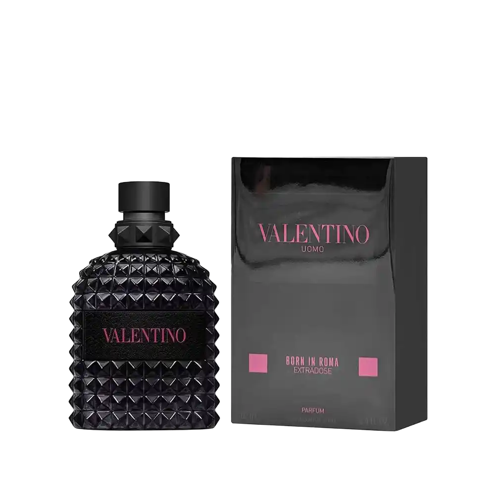 Born in Roma Uomo Extradose es una versión más intensa, oscura y sofisticada de la línea Born in Roma. Es una fragancia masculina amaderada con toques fougués y ambarados que busca capturar la energía vibrante de la noche romana. Destaca por una combinación picante en la apertura, lavanda potente en el centro, y un fondo marcado por vetiver profundo. Ideal para noches, clima más fresco o cuando quieres algo con presencia, carácter y buena duración.