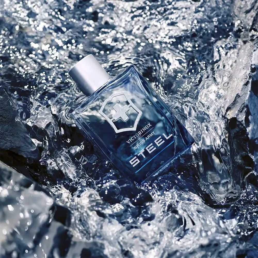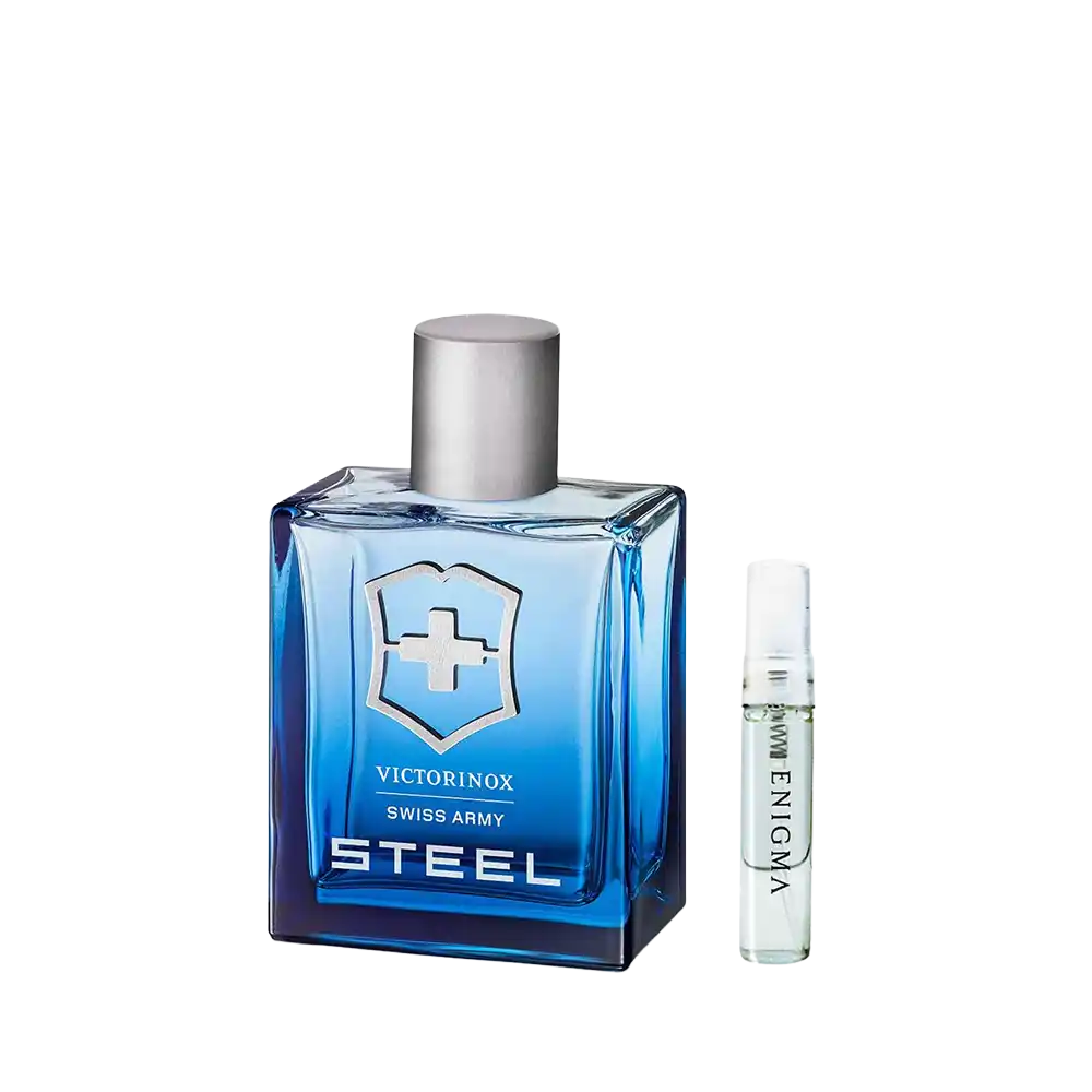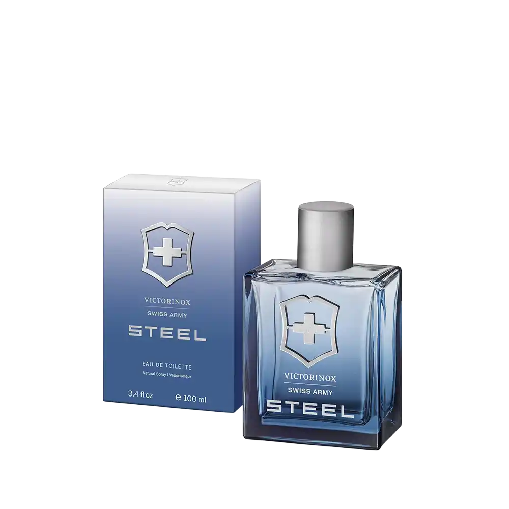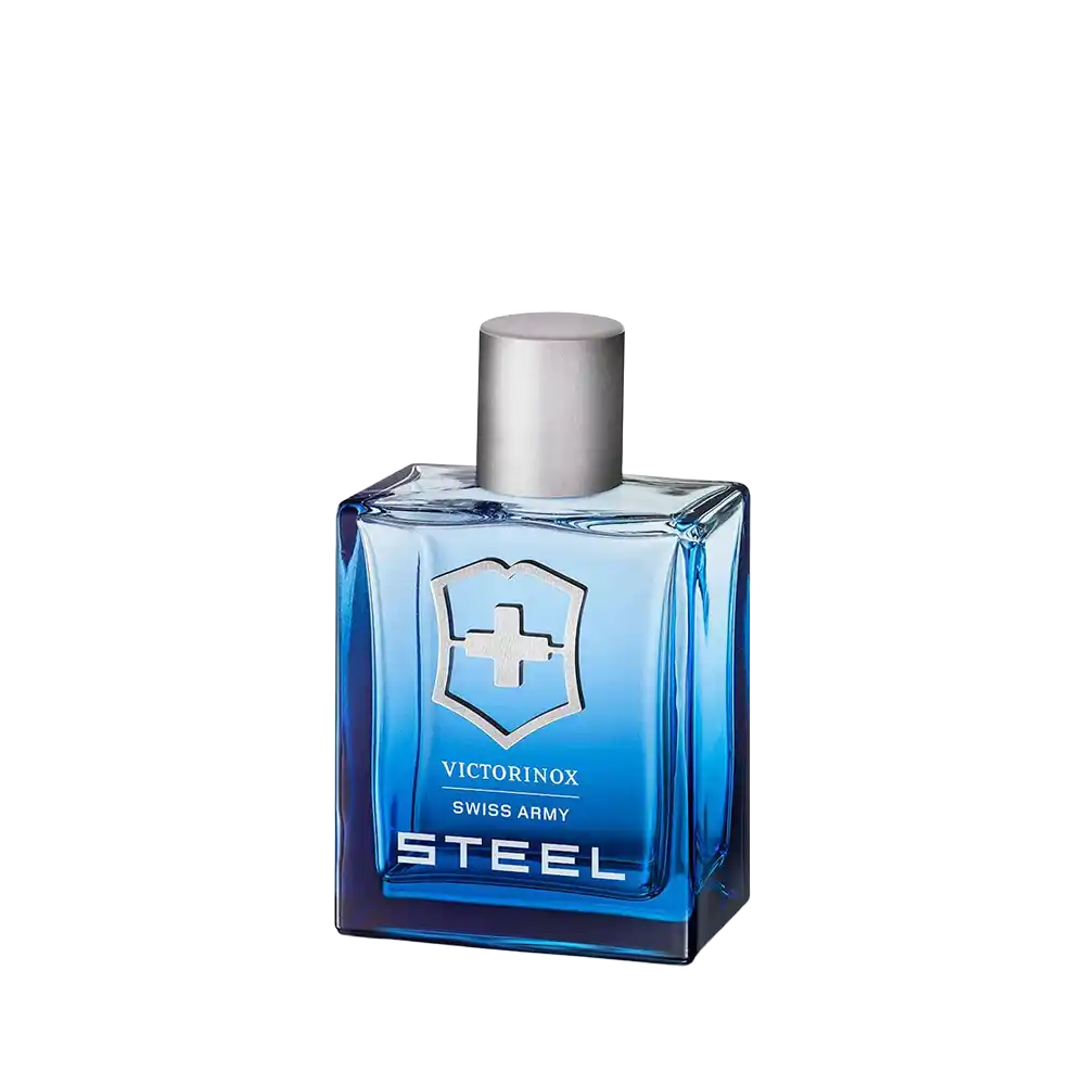 STEEL de VICTORINOX SWISS ARMY es una fragancia de la familia olfativa Aromática Acuática para hombres, lanzada en 2018 y concebida por el perfumista Christophe Raynaud. Inspirado en la fuerza y el magnetismo del acero, este Eau de Toilette encarna el espíritu del hombre moderno, decidido y seguro de sí mismo. Su aroma es distintivo, fresco y vigoroso, ideal para el uso diurno, mezclando notas iniciales de lavanda y hojas de violeta con un corazón refrescante de notas marinas y musgo, que finalmente se asienta en una base amaderada y carismática de cedro, creando una sensación tan potente como el propio metal.
